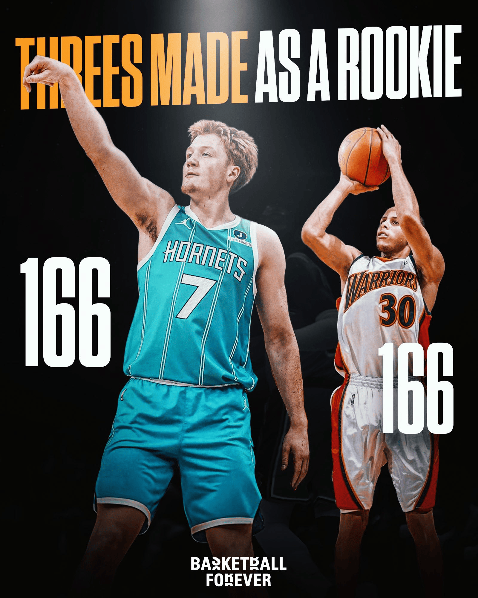 美媒Basketball Forever分享数据:克尼普尔目前出战50场,投进166记三分,已经追平库里新秀赛季三分命中数。